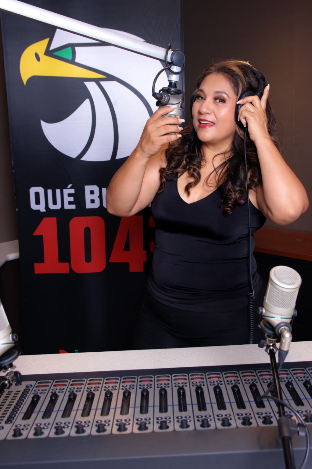 Juanita Buenrostro, originally from Tampico, Tamaulipas, Mexico, discovered her passion for radio over ten years ago as a guest on a local station. This sparked her journey into broadcasting, and she now hosts on Qué Buena, appears in TV commercials, and leads live events with infectious energy.